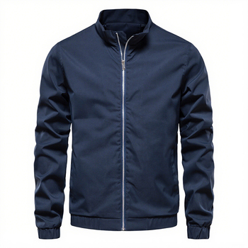 Giacca da uomo blu scuro semplice colletto Casual con cerniera in tinta unita giacca da uomo giacca da uomo lunga giacca da esterno
